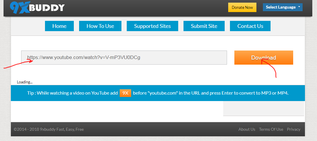 9xBuddy review tutorial step 2 enter video URL and click download