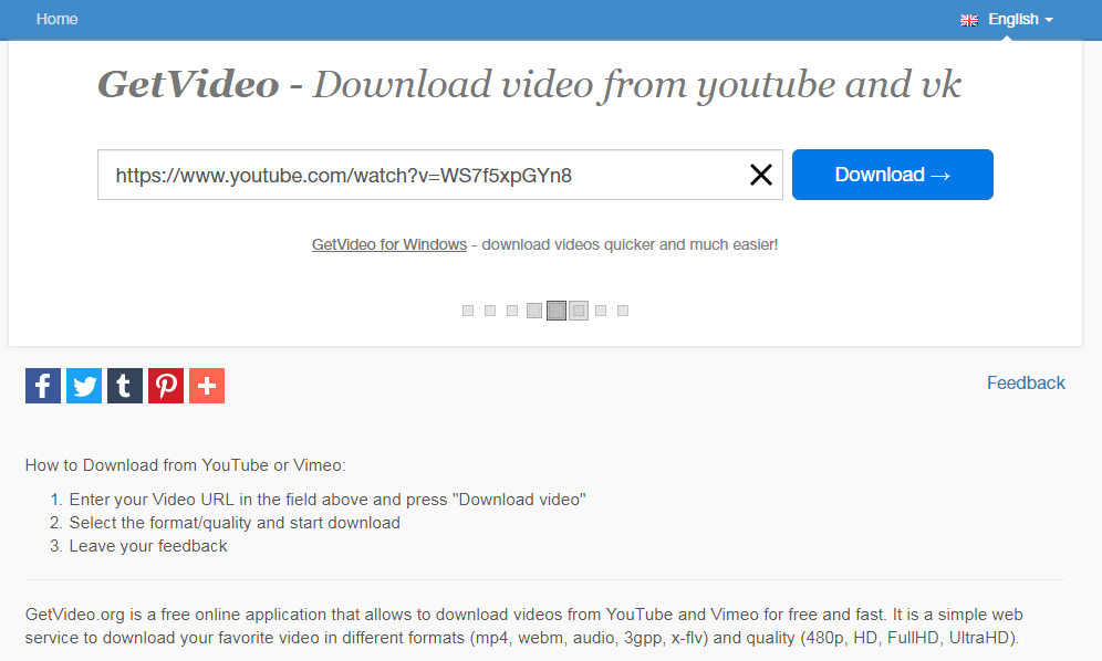 Getvideo.org Review Tutorial step 2 enter the link working indicator