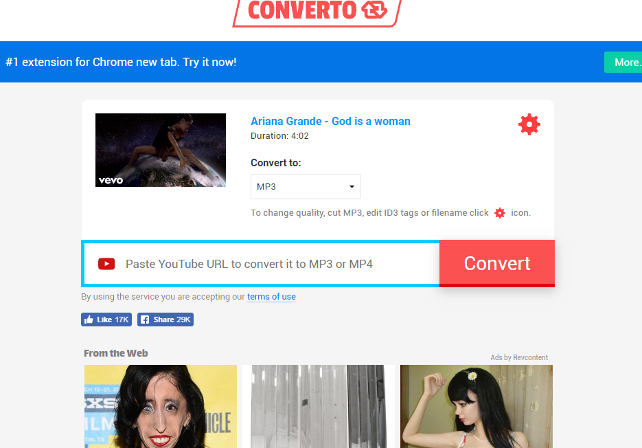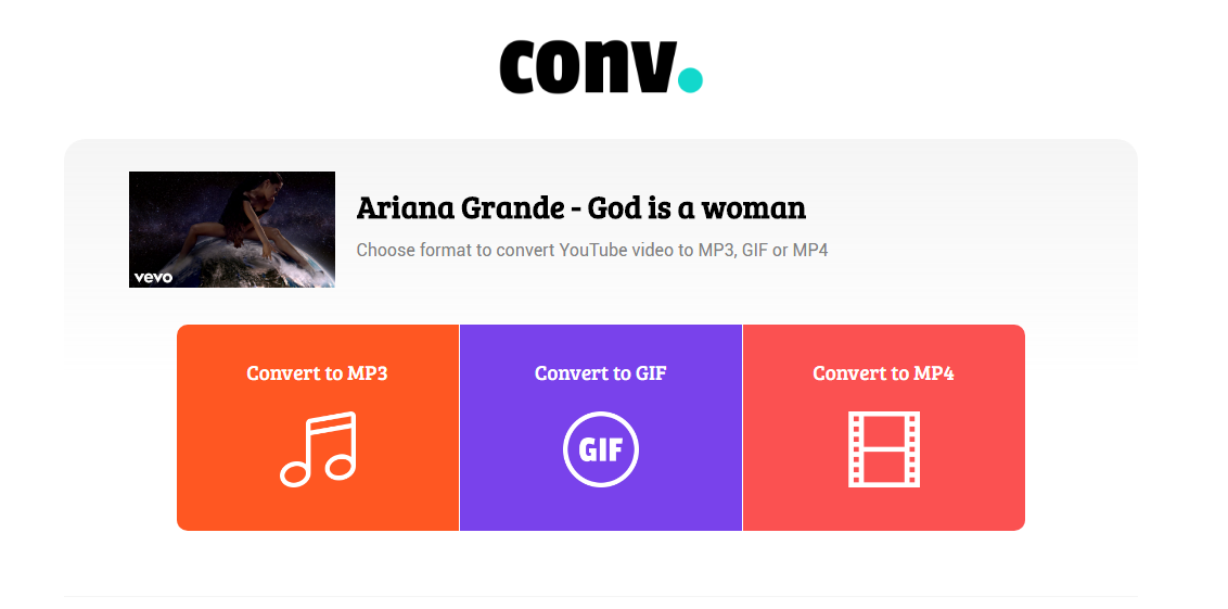 so there’s this new song by Ariana Grande – God is a Woman, let’s try and convert it to mp3 or download it, if possible, as video using convyoutube.com.