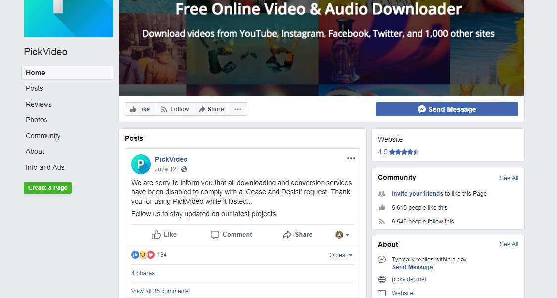 pickvideo.net website doesn’t work anymore facebook proof post